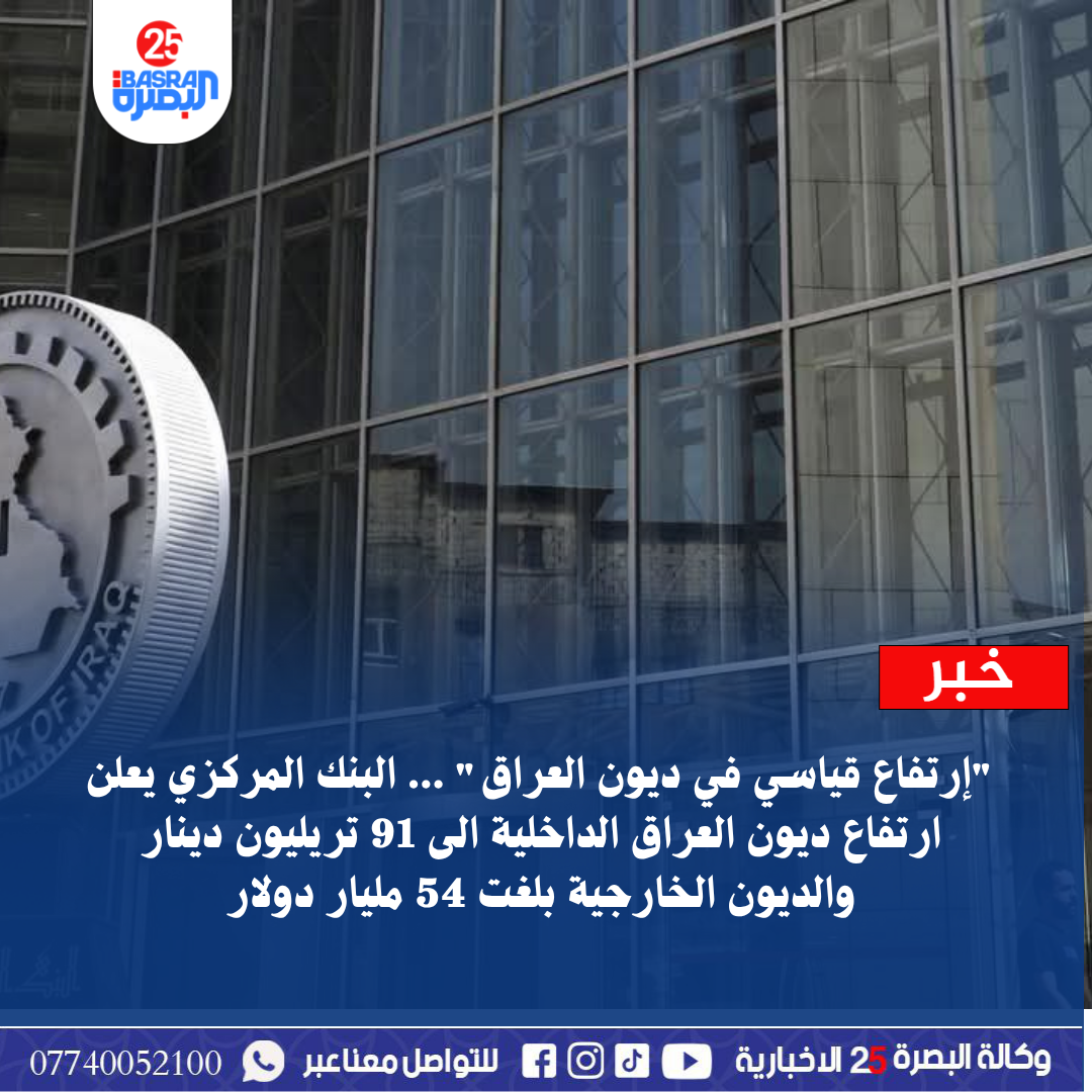 “إرتفاع قياسي في ديون العراق” … البنك المركزي يعلن ارتفاع ديون العراق الداخلية الى 91 تريليون دينار والديون الخارجية بلغت 54 مليار دولار
