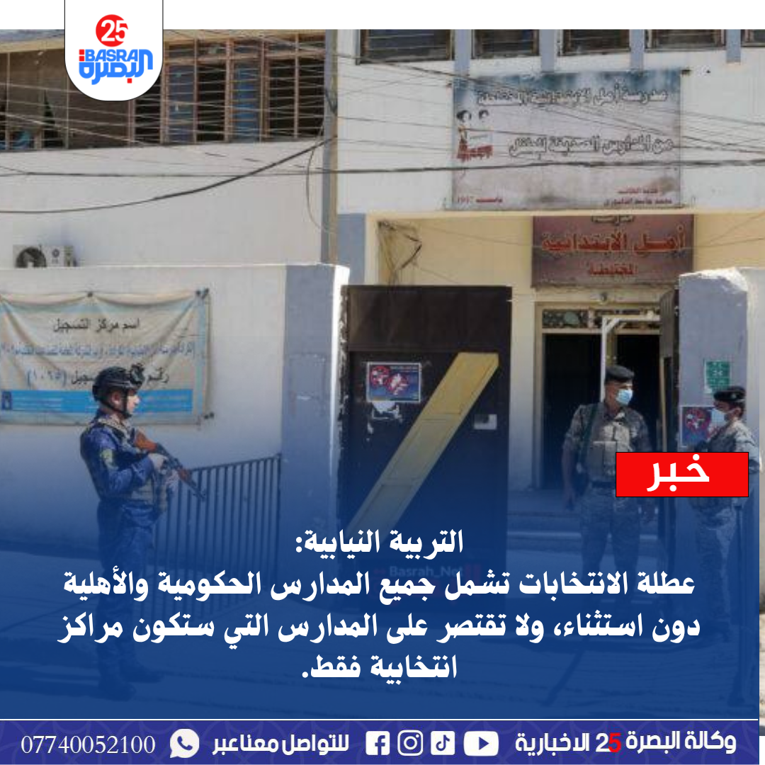 عطلة الانتخابات تشمل جميع المدارس الحكومية والأهلية دون استثناء، ولا تقتصر على المدارس التي ستكون مراكز انتخابية فقط.