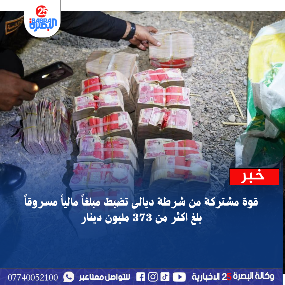 قوة مشتركة من شرطة ديالى تضبط مبلغاً مالياً مسروقاً بلغ اكثر من 373 مليون دينار