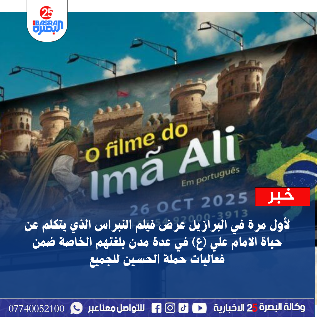 لأول مرة في البرازيل عرض فيلم النبراس الذي يتكلم عن حياة الامام علي (ع) في عدة مدن بلغتهم الخاصة ضمن فعاليات حملة الحسين للجميع