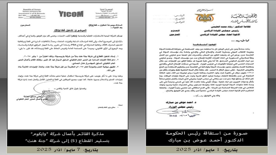 كما تشير الوثائق أيضاً إلى مساعٍ لإنشاء كيانات مستقلة لإدارة قطاع النفط خارج إطار حكومة الشرعية، في خطوة قد تؤدي إلى تفتيت الإيرادات وزيادة تعقيدات الوضع الاقتصادي في مناطق سيطرة الشرعية، وتشير الوثائق أيضاً إلى محاولات إعادة تصدير النفط من موانئ حضرموت بترتيبات لا تمر عبر صنعاء، وهو ما ترفضه الأخيرة وتعتبره قرصنة ونهباً لمورد سيادي يخص أبناء اليمن جميعاً.