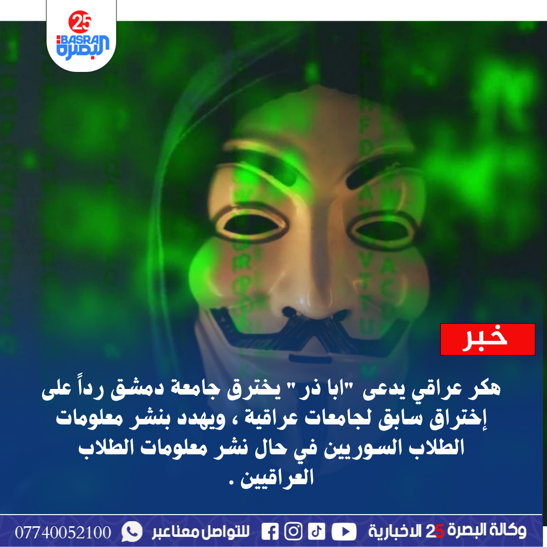 هكر عراقي يدعى “ابا ذر” يخترق جامعة دمشق رداً على إختراق سابق لجامعات عراقية ، ويهدد بنشر معلومات الطلاب السوريين في حال نشر معلومات الطلاب العراقيين .