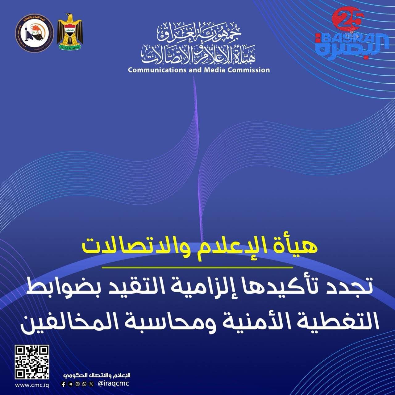 هيأة الإعلام تجدد تأكيدها إلزامية التقيد بضوابط التغطية الأمنية ومحاسبة المخالفين تشدد هيأة الإعلام والاتصالات على ضرورة الالتزام الصارم بمضامين التوجيهات الصادرة عنها بشأن ضبط التغطيات الإعلامية للأحداث الأمنية، في ظل الظرف الأمني الاستثنائي الذي تمر به البلاد، مشددة على إلزامية العمل بالإعمام المرقم (13) الصادر بتاريخ 1 آذار 2026، وقرار الهيأة الصادر بتاريخ 18 آذار 2026. وإذ تجدد الهيأة التزامها بدعم حرية الإعلام وحق الجمهور في المعرفة، بوصفهما حقاً مكفولاً وركناً أساسياً في النظام الديمقراطي، فإنها تؤكد أن ممارستهما في ظل الظروف الاستثنائية التي تمر بها البلاد والمنطقة، وما يرافقها من تداعيات قد تمس الأمن القومي وسلامة المواطنين، تستوجب الالتزام الكامل بالمعايير المهنية في التغطية الأمنية، بما يُمثل واجباً وطنياً ومهنياً لحماية أمن الوطن وصون حياة المواطنين. وتؤكد أن هذه التوجيهات تمثل إطاراً تنظيمياً ومهنياً ملزماً لجميع المؤسسات والمنابر والمنصات الإعلامية العاملة في العراق دون استثناء، وأن أي مخالفة لها تُعد خرقاً صريحاً يستوجب المساءلة القانونية وفق القوانين واللوائح النافذة. كما تشير إلى أنها ماضية في محاسبة المؤسسات والمنصات المخالفة، واتخاذ الإجراءات القانونية والتنظيمية بحقها، بما في ذلك فرض العقوبات المنصوص عليها، وصولاً إلى تعليق النشاط في الحالات الجسيمة، وذلك استناداً إلى الصلاحيات المخولة لها بموجب الأمر التشريعي رقم (65) لسنة 2004. وتشدد على أن المراسلين والعاملين في المؤسسات الإعلامية يتحملون المسؤولية المهنية والقانونية المباشرة عن طبيعة المحتوى الذي يتم بثه أو تداوله، وفق السياقات القانونية المعتمدة، ولا يُعفى أي طرف من المساءلة لأي مبرر كان. وتجدد الهيأة دعوتها للمؤسسات الإعلامية الملتزمة إلى الاستمرار في أداء دورها المهني المسؤول، بما يسهم في دعم الاستقرار وترسيخ بيئة إعلامية منضبطة تحترم القانون وتصون الأمن العام والسلم الأهلي. ……………. هيأة الإعلام والاتصالات مكتب الإعلام والاتصال الحكومي 22 آذار 2026