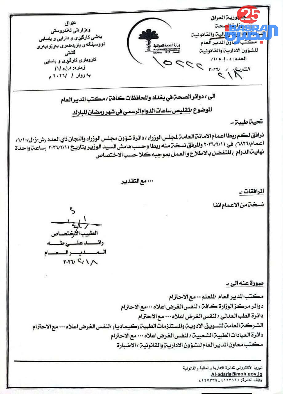 - محافظ بغداد يقرّر تعطيل الدوام يوم غد مع استثناء المؤسسات الخدمية من القرار