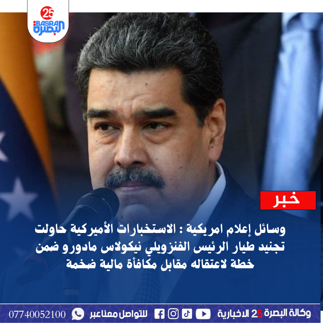 وسائل إعلام امريكية : الاستخبارات الأميركية حاولت تجنيد طيار الرئيس الفنزويلي نيكولاس مادورو ضمن خطة لاعتقاله مقابل مكافأة مالية ضخمة