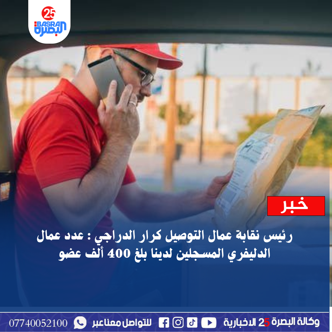 رئيس نقابة عمال التوصيل كرار الدراجي : عدد عمال الدليفري المسجلين لدينا بلغ 400 ألف عضو