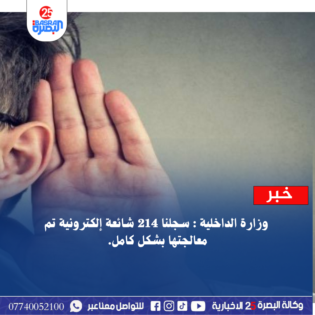 وزارة الداخلية : سجلنا 214 شائعة إلكترونية تم معالجتها بشكل كامل.